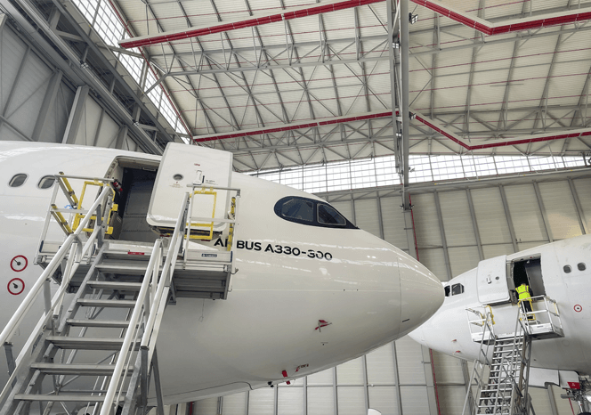 Vallair’s hangar can accommodate two A330 aircraft, or one A330 and up to three A321s, at any one time. This affords the capability to perform both wide and narrowbody maintenance, and offer a ‘Swiss-knife’ approach with tailored solutions using all of its capabilities on site. These include maintenance, paint, engine shop, aerostructure repairs, conversion, teardown and component support.