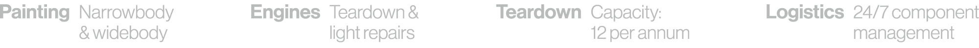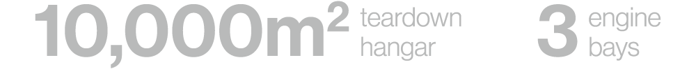 A further dedicated 10,000 sq.m. teardown hangar houses three engine bays and a multiskilled aerostructure repair shop.